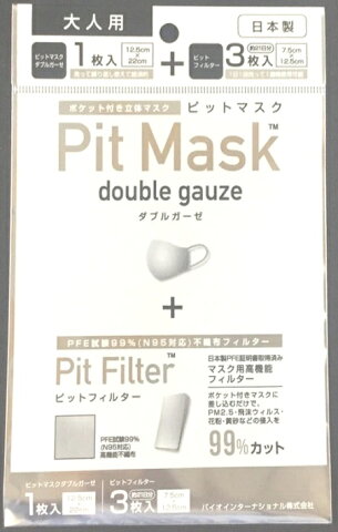 【予約品】 高機能マスク 大人用 子供用 ダブルガーゼ ピットマスク ガーゼマスク1枚+高機能フィルター3枚入(21日分) セット 日本製 国産 正規品 Pit Mask ウイルス対策 花粉対策 【メール便(ゆうメール)送料無料】99.9%カット 洗える 洗濯可能 エコ
